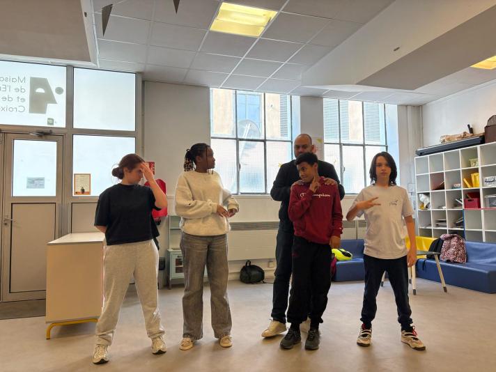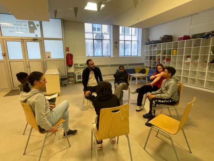 L’année dernière, les jeunes inscrit.e.s à l’AfterSchool les jeudis ont profité d’un projet Stand Up, avec l’intervention d’un humoriste de L’ékip production lors d’une dizaine de séances afin d’apprendre les clés de l’expression orale et en public, de prendre confiance en elles/eux, de découvrir le monde de la scène, et bien d’autres nouvelles choses. À la fin de l’année scolaire, les jeunes ont proposé une représentation de Stand Up devant leurs familles et ami.e.s.